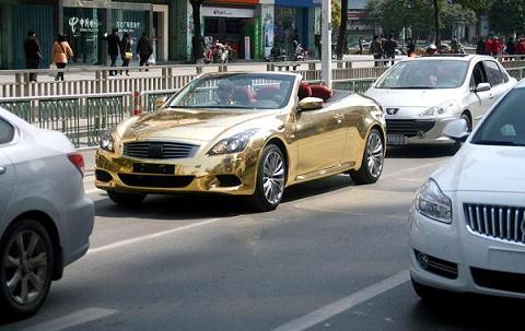 2011年3月29日,在南京新街口,一輛車身貼滿黃金的“黃金跑車”停在馬路邊上,車主停好車后隨即離去,過了約10分鐘,車被交警以違停拖走。