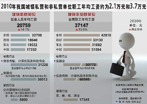 國(guó)家統(tǒng)計(jì)局的數(shù)據(jù)顯示,2010年全國(guó)城鎮(zhèn)非私營(yíng)單位在崗職工年平均工資為37147元,比上年增長(zhǎng)13.5%,增幅提高1.5個(gè)百分點(diǎn)。