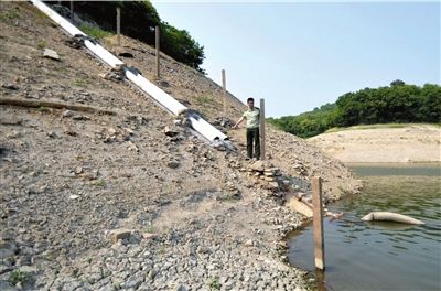 舟山蝦峙水庫干涸見底,自來水廠用于取水的管道已高于水面,無法取水