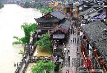 6月6日,湖南鳳凰古城景區(qū),沱江水位猛漲
