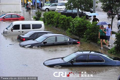 2011年6月28日,湖南省長(zhǎng)沙市天心區(qū)書院路金盛布業(yè)市場(chǎng)淹沒在水中。當(dāng)天中午,長(zhǎng)沙上空電閃雷鳴,如瀑大雨傾瀉而下,致使城區(qū)部分地段積水嚴(yán)重,交通陷入混亂狀態(tài)。
