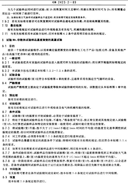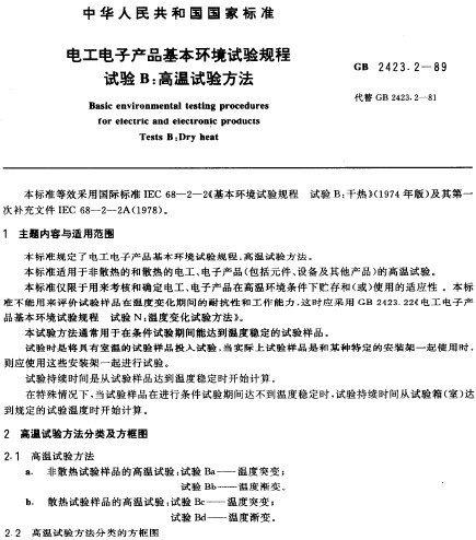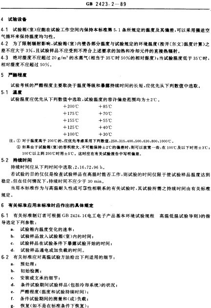 GB2423.2-89電子電工試驗規(guī)程高溫試驗方法