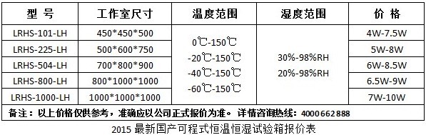 2015新可程式恒溫恒濕試驗箱報價表
